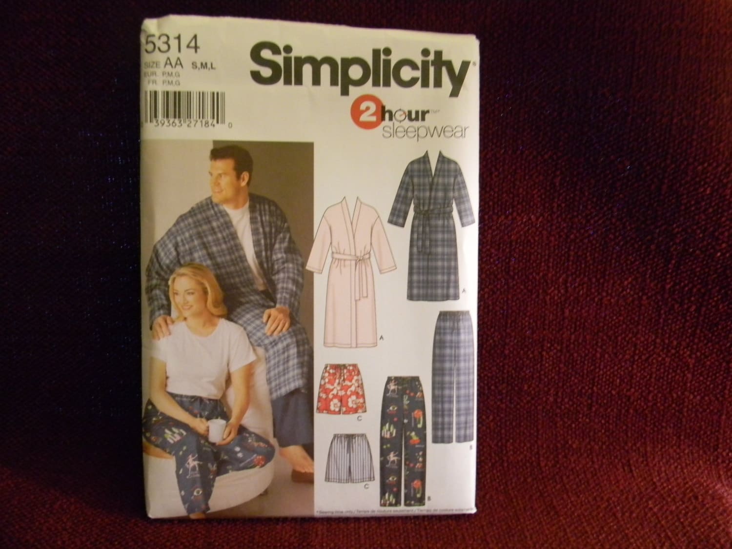 Simplicity 5314 Pajamas Pattern 3 Sizes Robe Shorts Pants 2 Hour For Sale Online Ebay