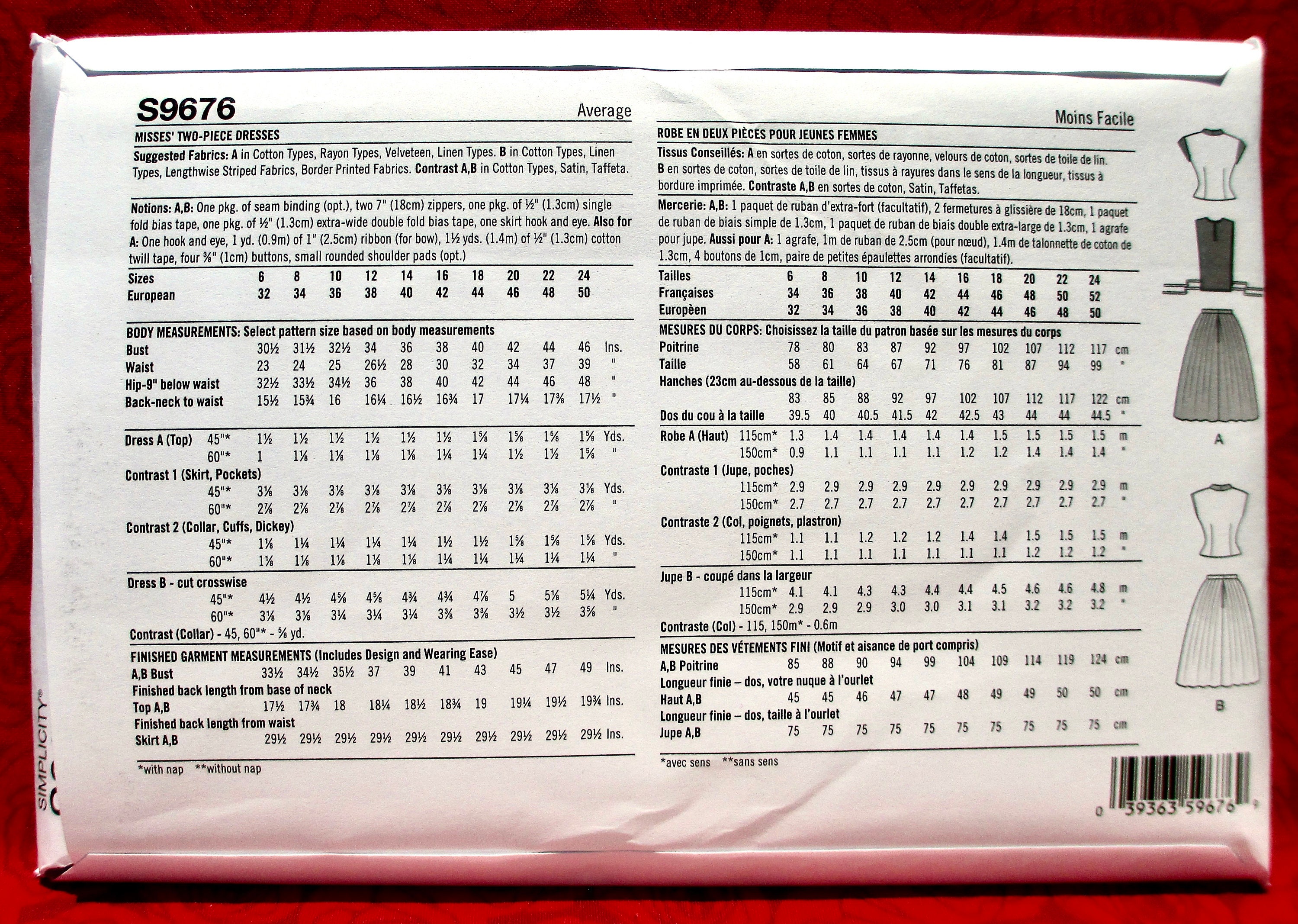 Simplicity Sewing Pattern S9676 Bodice Top Pleated Skirt Etsy